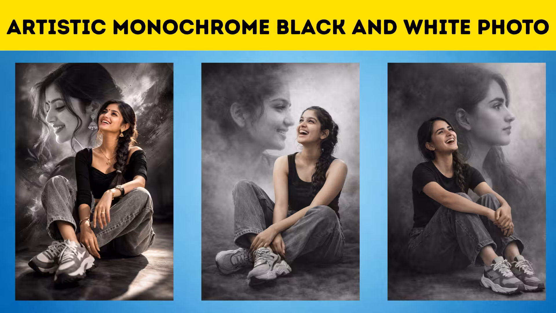 Trending Artistic Monochrome Black and White Photo Edit Prompt for Viral Social Media Look