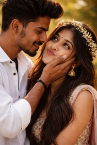 Here is a stylish prompt you can use for creating beautiful couple edits. Create a romantic cinematic couple portrait with soft glowing light, dreamy background blur, elegant color tones, emotional facial expressions, stylish outfits, realistic skin texture, gentle hand pose, magical sunset atmosphere, depth of field, premium retouching, ultra-detailed features, social media viral editing style, natural romantic mood, and high-quality professional finish. This type of prompt works well for creating an edit that feels polished, modern, and visually attractive.